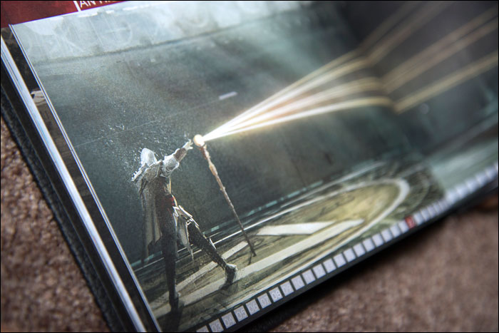 But it is when you fold open the front of this collector’s edition that you really see how beautifully made it is. The paper lid that folds over two sides of the box is very elegantly held shut with a magnet.