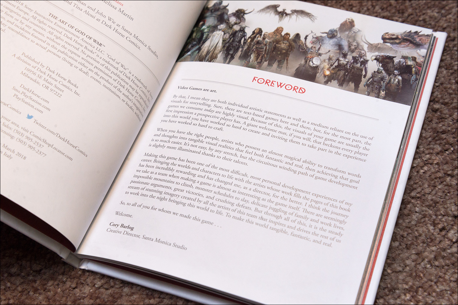Then there’s the artbook, published by Dark Horse. The hardcover book starts with a foreword by game director Cory Barlog, followed by artworks of the game’s environments, characters, enemies and weapons. It’s not very large because it has to fit next to the game in the box, but it’s still a nice little extra.