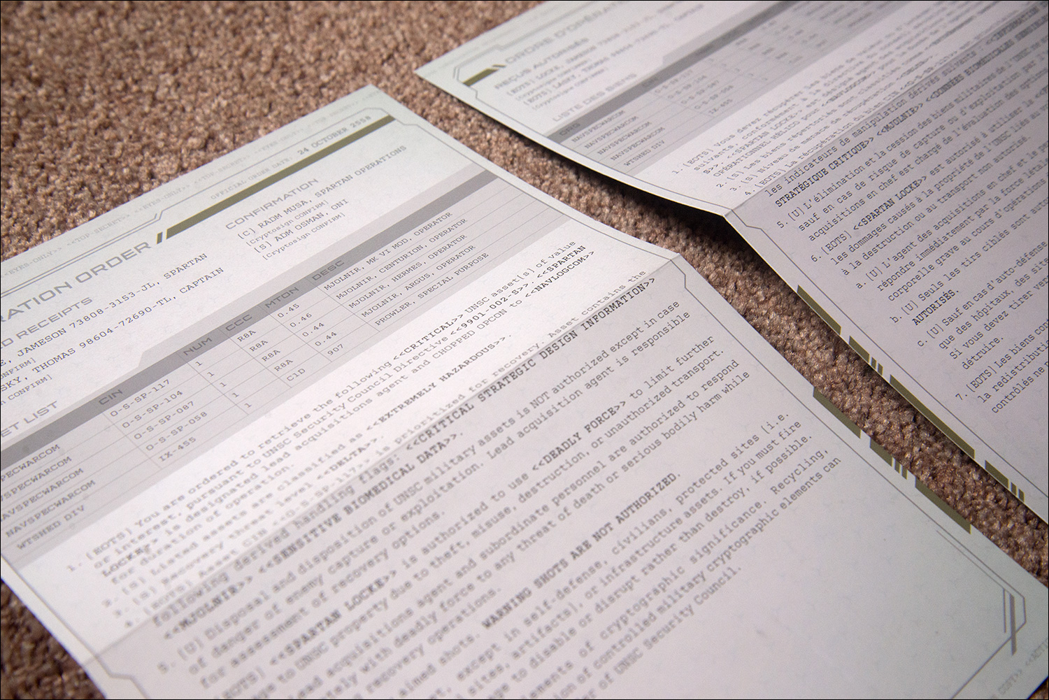 These two documents are ‘Locke’s orders’, or, in other words, simply white pieces of paper with black text on it. Kind of boring as far as collector’s editions items go, but perhaps some of the most devoted Halo fans would find this interesting.