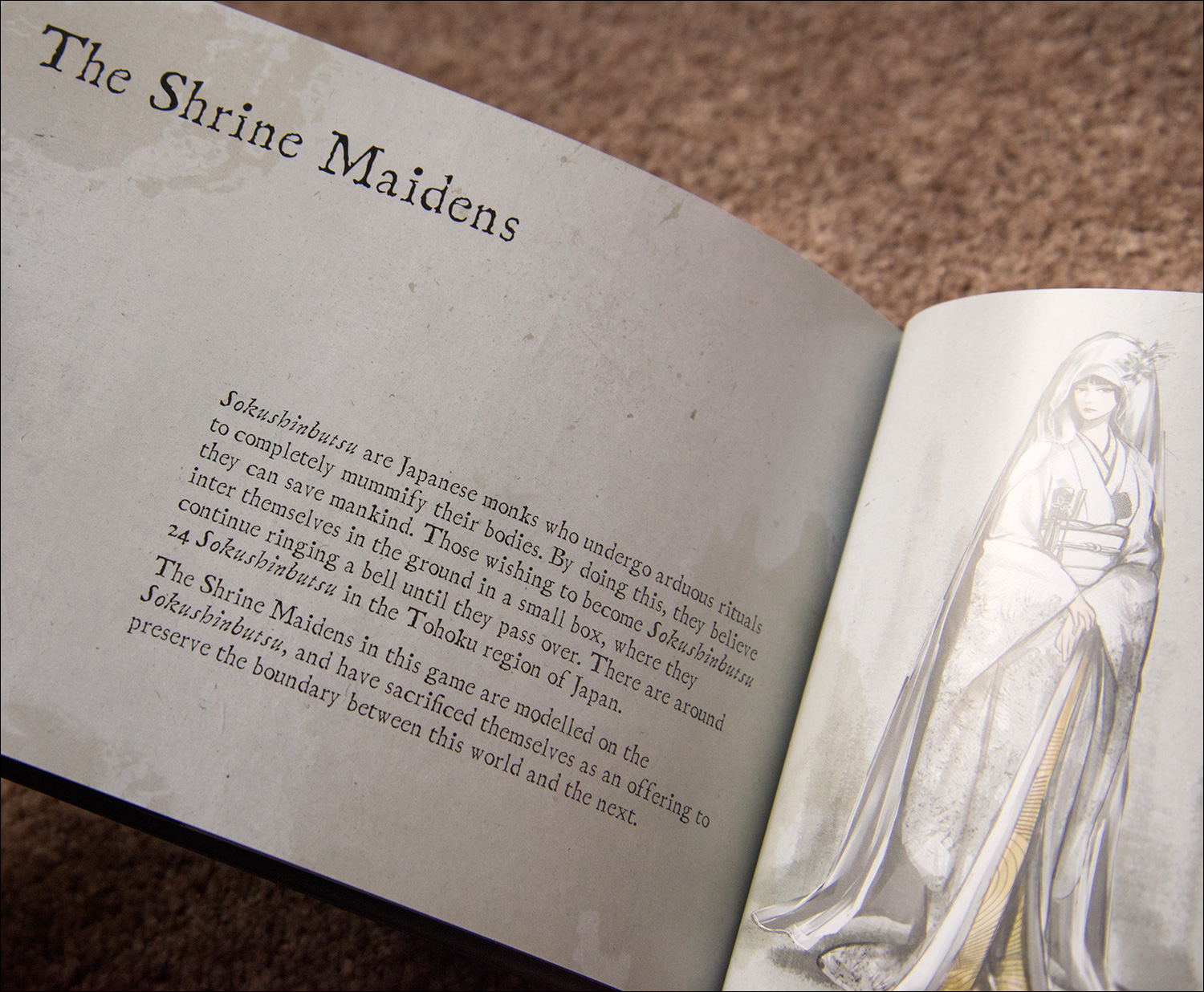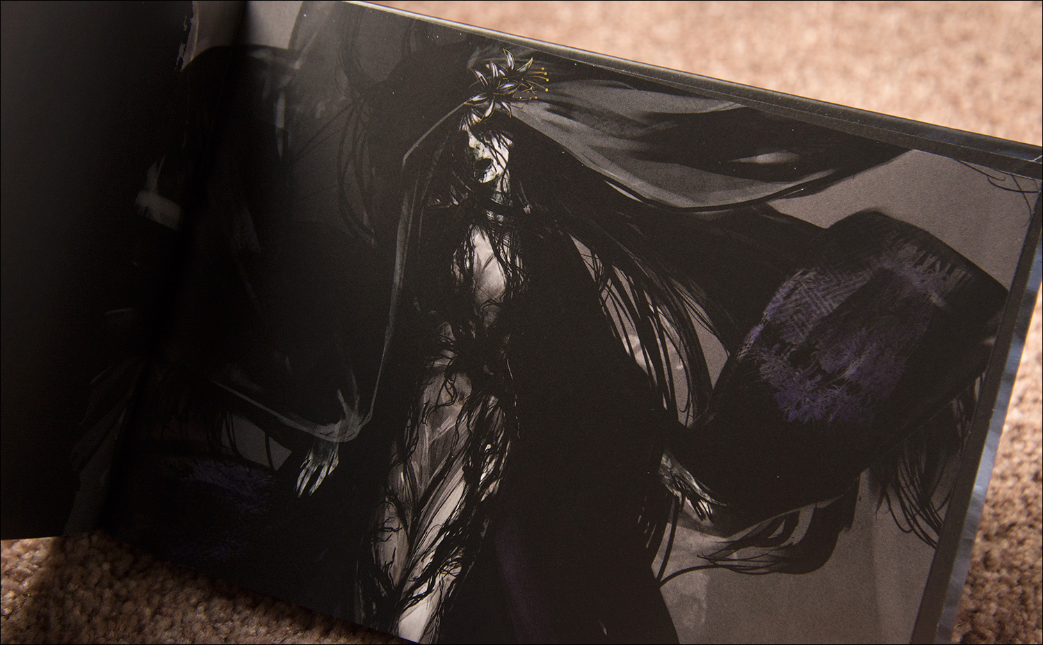 Also included is a small hard cover art book. The contents are divided into several chapters: foreword (followed by general artwork), characters, ghosts, the camera obscura and the shrine maidens.
